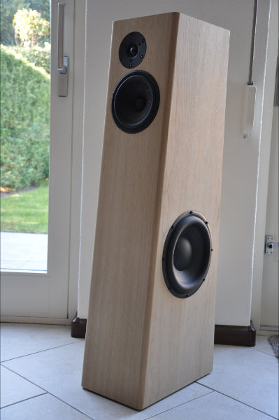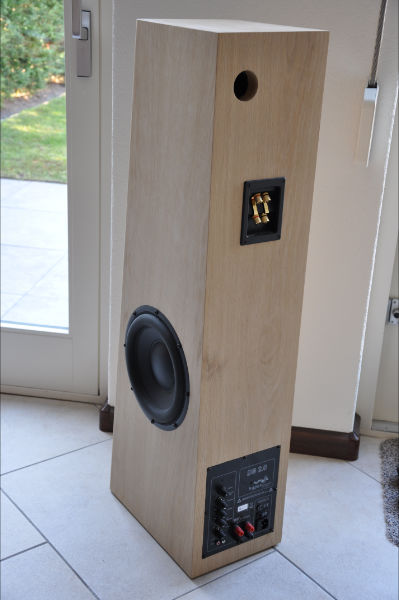 "Een speciale uitvoering van de Scan Speak Reference SE monitors, elk voorzien van een ingebouwde aktieve subwoofer zoals de Sub 8 uit ons programma, met een 10 inch XXLS woofer van Peerless in een gesloten kast. Door de subwoofers te intergreren in de frontluidsprekers hoeft er niet een aparte subwoofer te worden geplaatst en kan de laagaanvulling ook bij stereoweergave optimaal zijn diensten bewijzen. Een Marantz combinatie met de SR 7005 en de BD 7004 zorgen voor de aansturing, uitbreiding naar surround staat in de planning. De klant zegt er over: Hierbij wel (eindelijk) de foto's zoals de 2 frontspeakers geworden zijn. we zijn er nog steeds super blij mee en genieten met volle teugen van het geluid."