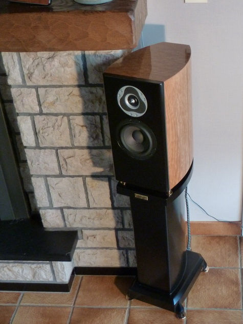 De boxen zijn gemaakt van uitgefreesde MDF platen die op elkaar zijn gelijmd ook de steunen zijn idem maar dan massief. Door de afgeronde zijkanten oogt het ook veel mooier maar het was wel spannend om dat te fineren. Met wel heel speciaal fineer namelijk rozen wortelhout welk trouwens heel zeldzaam is. Van klank zijn ze zeer goed, ik zou zeggen kleine boxen die klinken als grote maar ze hebben wel een zeer stabiele versterker nodig.